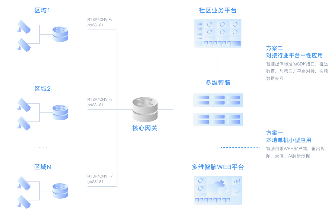 瑞馳不但給合作伙伴提供智慧社區(qū)/園區(qū)所需的邊緣人臉?biāo)惴?、全目?biāo)結(jié)構(gòu)化和智能視頻分析的算法,滿足老社區(qū)攝像頭的利舊賦能升級,還可以提供多維智腦一體機,滿足視頻監(jiān)控,視頻存儲以及算法賦能一體化解決方案。